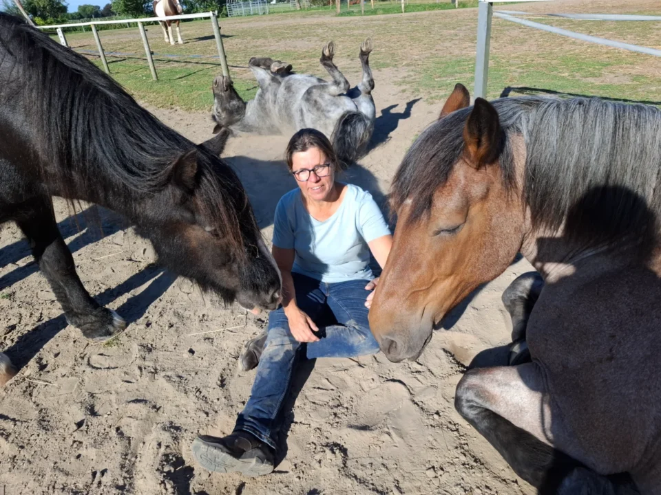 Die Facharbeit mit dem Thema traumatische Erfahrungen einer Klientin durch Verlusterleben im Kindesalter, die praktische Prüfung auf dem Pferd mit einer Klientin mit frühkindlichem Autismus und Mutismus und eine schriftliche Klausur über die Bandbreite aller Lernthemen rundeten die fachliche Ausbildung ab.